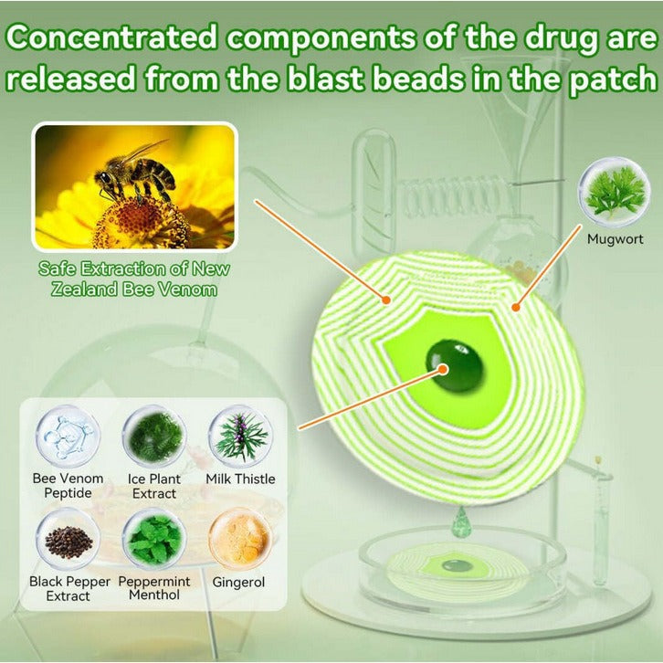 I have combined various botanical ingredients. long known for their benefits to the lymphatic system and body metabolism. to create LOVILDS™ Bee Venom Lymphatic Drainage Slimming Foot Patch. Experimental evidence indicates that this lymphatic drainage slimming foot patch is the optimal choice for improving the lymphatic system. The blend of these natural botanical ingredients. coupled with the potent properties of bee venom. offers a groundbreaking solution for swiftly addressing metabolic disorders and lymphatic congestion issues.